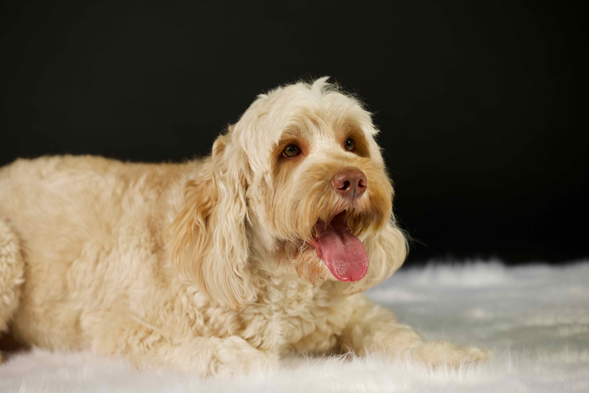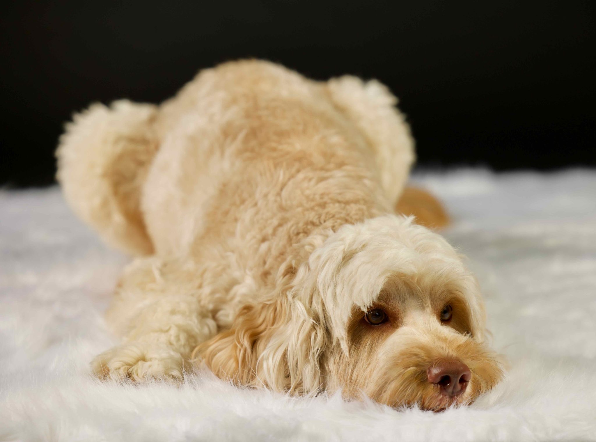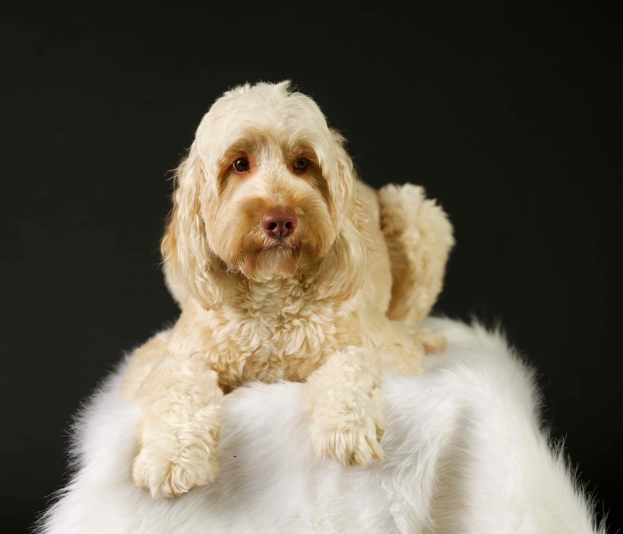 James is a large medium-sized Cobberdog being 19 inches or 48cms at the wither. He has a striking blonde coat with rose pigment (nose colour), in low-density straight fleece — soft, silky, and easy to maintain. But as beautiful as he is on the outside, it’s James’s nature that truly sets him apart.